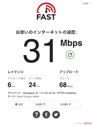 上で同僚と同じプロバイダーと書きましたが、正確には「IIJmioひかり」と固定IP用に「Interlink ZOOT NEXT」の2つのプロバイダーを契約しており、同僚は「IIJmioひかり」を常用していて私は「Interlink ZOOT NEXT」を常用していました。というのに後から気づいたため、はじめはInterlinkのほうで計測しています。IIJmioのほうに切り替えても速度はそれほど変わらなかった記憶があります。
